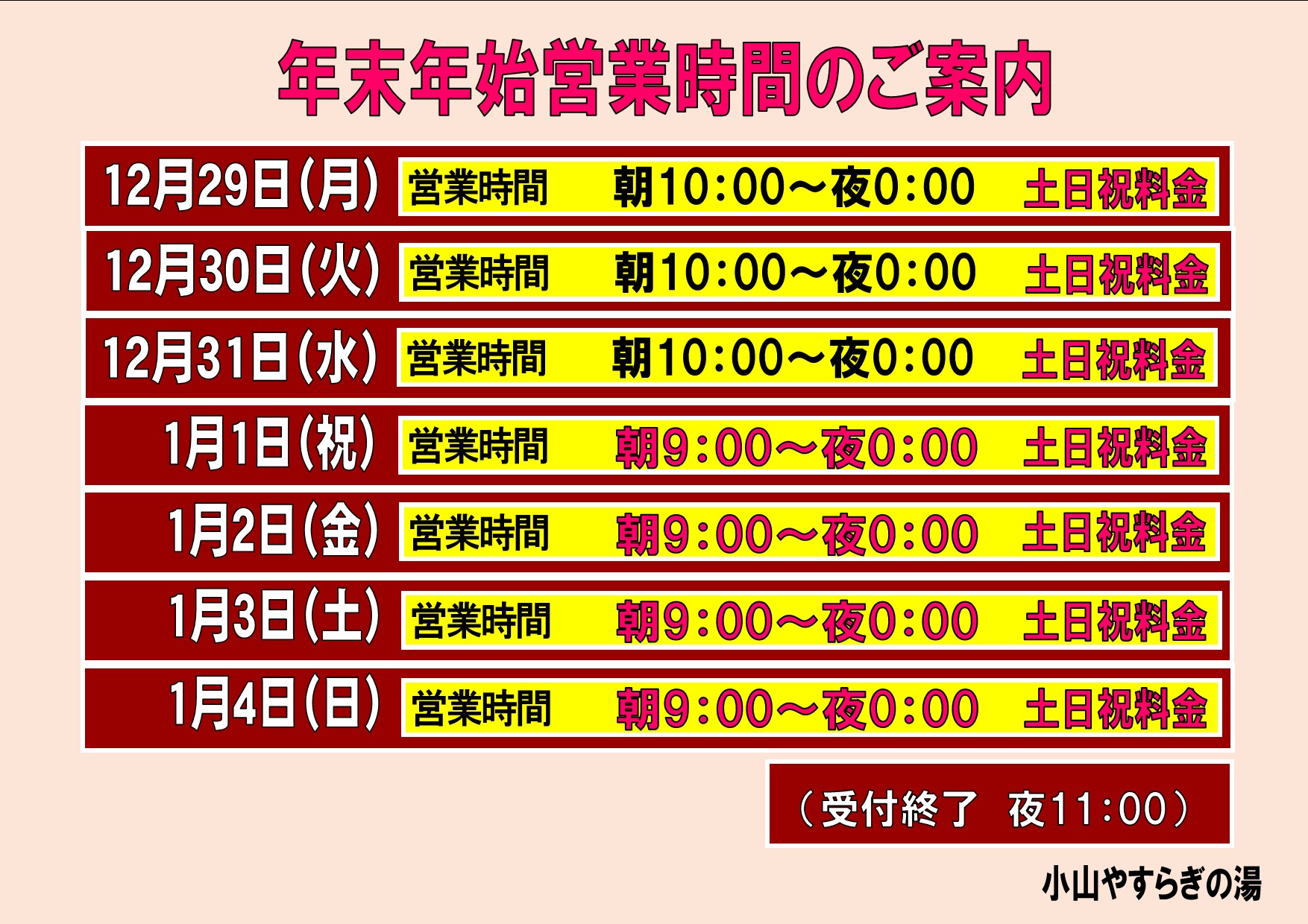 年末年始 営業時間のご案内