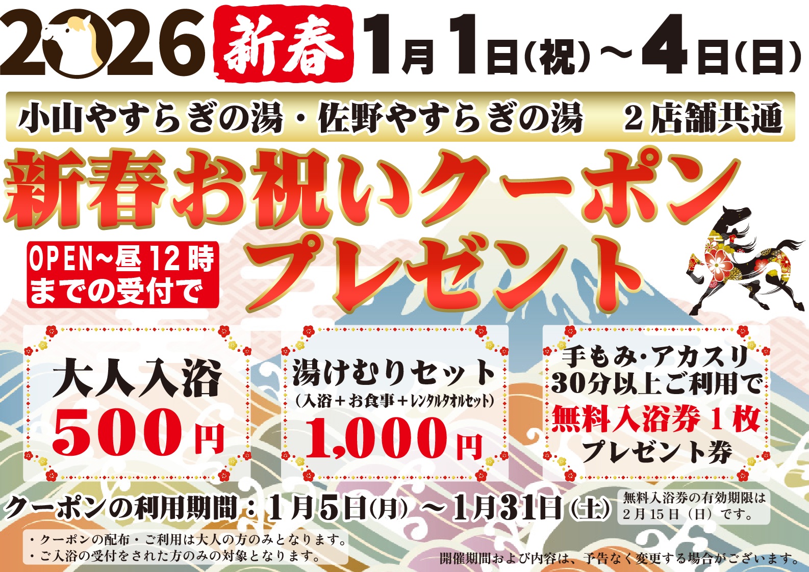 小山店・佐野店合同!!新春お祝いクーポンイベントのご案内