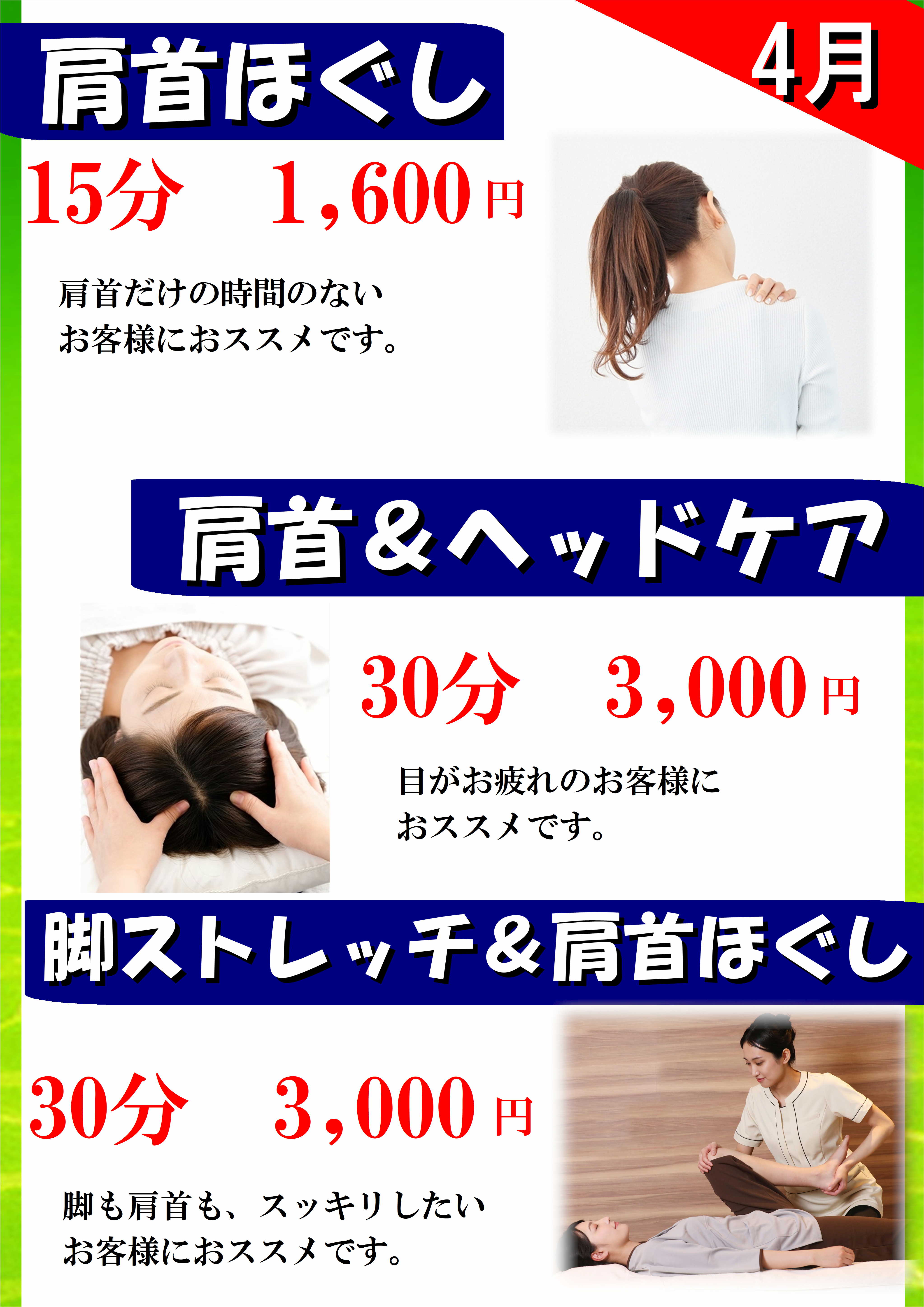 手もみ処 4月キャンペーンのご案内